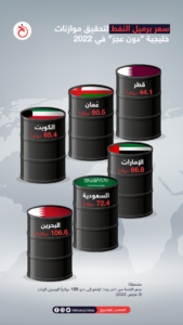 وتعتمد دول الخليج من أجل موازنتها السنوية من أرباح النفط على متوسط أسعاره، فعلى سبيل المثال فإن قطر قدرت بيع نفطها بـ44.1 دولاراً للبرميل، فيما كانت البحرين الأعلى بـ106.6 دولارات.