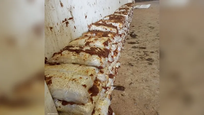 وفي التفاصيل، تم ضبط ما يقارب 509 كيلوغرامات من حبوب الكبتاغون المخدر في ” البراد” الشاحنة الأولى مخبأة داخل مادة عجين التمر، بالإضافة إلى ضبط ما يقارب 483 كيلوغراما من الكبتاغون المخدر في “البراد” الشاحنة الأُخرى وضمن نفس مادة عجين التمر.