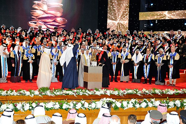 تحت رعاية وحضور حضرة صاحب السمو أمير البلاد الشيخ صباح الأحمد الجابر الصباح حفظه الله ورعاه أقيم صباح الاثنين حفل توزيع شهادات الإجازة الجامعية والدراسات العليا على اوائل خريجي الجامعة المتفوقين من الدفعة الثامنة والاربعين للعام الجامعي 2017 / 2018 وذلك على مسرح المغفور له الشيخ عبدالله الجابر الصباح بمنطقة الشويخ.
