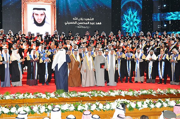 وشهد الحفل سمو ولي العهد الشيخ نواف الأحمد الجابر الصباح ومعالي رئيس مجلس الأمة مرزوق علي الغانم وسمو الشيخ جابر المبارك الحمد الصباح رئيس مجلس الوزراء وكبار المسؤولين بالدولة وجمع غفير من أهالي الطلبة الخريجين والمواطنين.