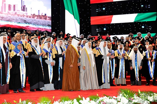 إن جامعة الكويت التي تتشرف اليوم يا صاحب السمو برعايتكم الكريمة لحفل خريجيها المتفوقين في كلياتها لتفخر بهذا الشرف الكبير الذي عودتم عليه أبناءكم المتفوقين كل عام والذي يؤكد على المكانة العظيمة التي يحظى بها كل منتسبي الجامعة من سموكم والذين يرفعون إلى مقام سموكم الكريم أسمى آيات الشكر والامتنان والعرفان لما لمسوه من سموكم من تقدير لهذا الصرح العلمي الشامخ الذي يتعايش مع اهتمامكم وحرصكم ومؤازرتكم ودعمكم لهذه الجامعة فلكم منا جميعا كل الحب والتقدير والامتنان.