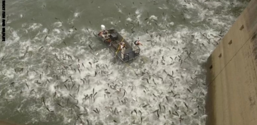نشرت دائرة الحياة البرية والثروة السمكية في ولاية كنتاكي، مقطع فيديو يظهر لحظات تطايرت فيها مئات الأسماك من بحيرة صناعية في الولايات المتحدة، بعد أن تم ضربها بصعقه كهربائية.
